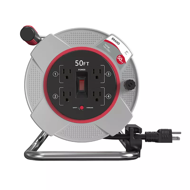 Lar > Produtos > Carretel de cabo > Carretel de cabo de plástico > 4 pontos de venda bobina de cordão de plástico 50 pés com proteção contra sobrecarga